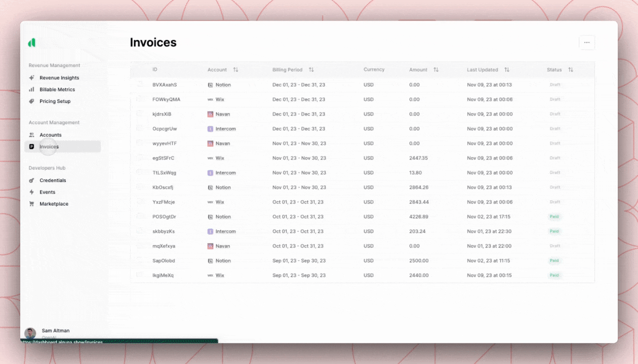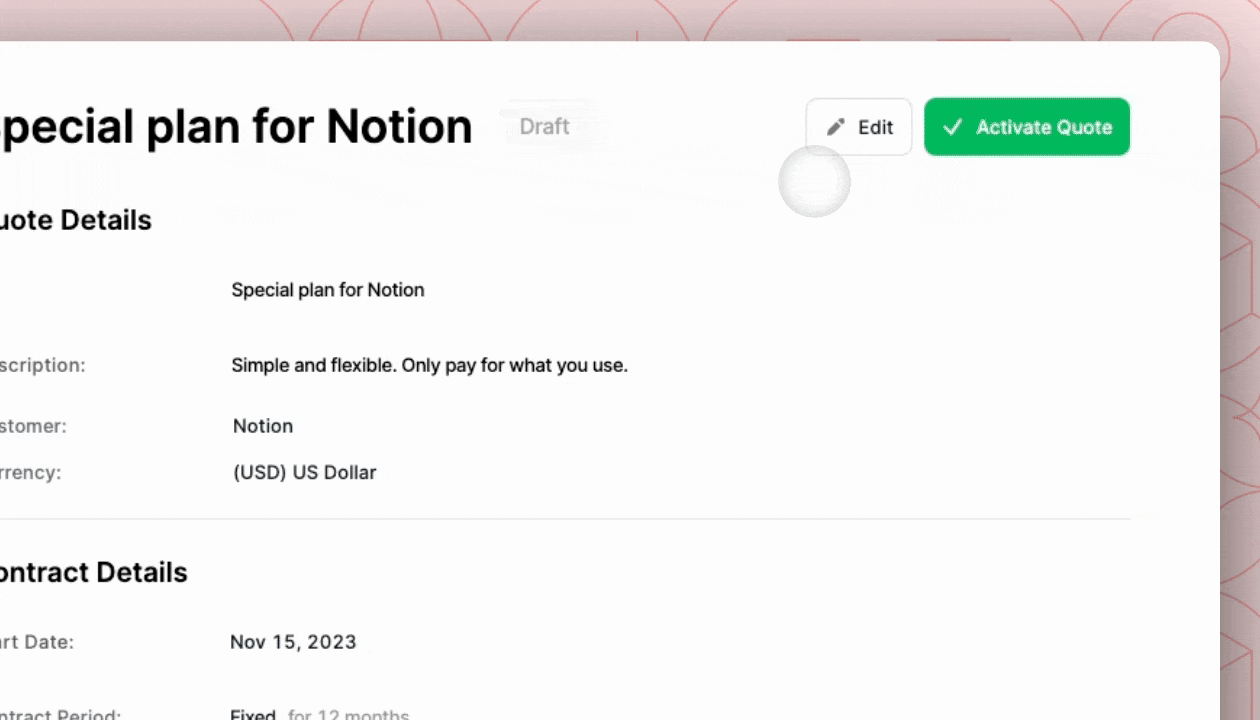Since the pricing models and quotes are natively integrated, everything is automatically connected with the billing engine, enabling the accurate and reliable customer billing experience directly via Alguna or ERP tools of your choice (Stripe Invoicing, Netsuite, Xero, Quickbooks, Bill)