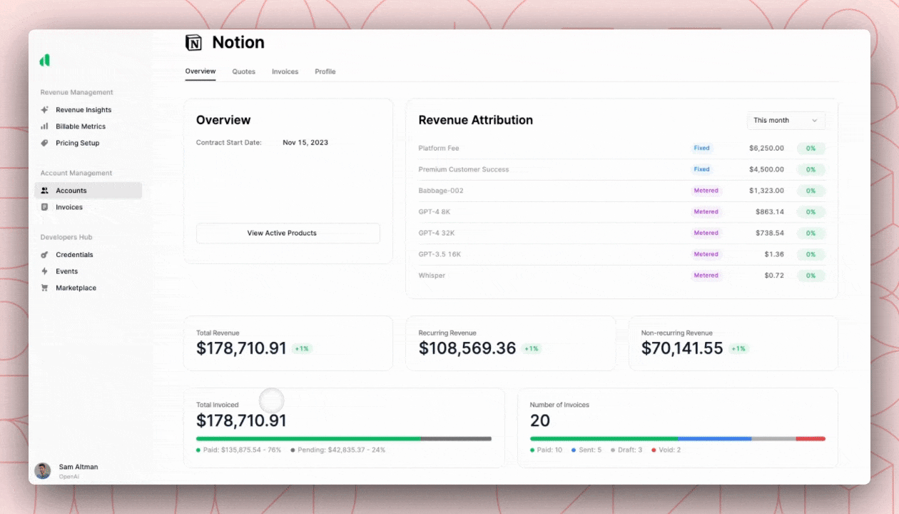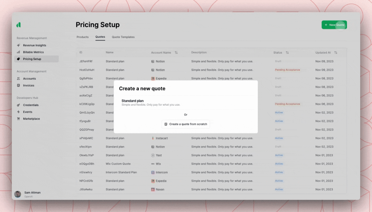 - Setup pricing and packaging across all sales channels while supporting any pricing model (including subscriptions, usage-based, platform fees, etc.)