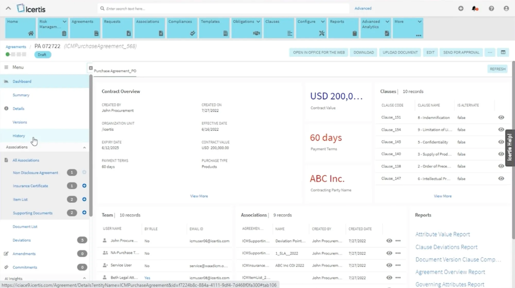 Icertis is an enterprise‑grade CLM platform known for its robust clause management, obligation tracking and analytics. It serves some of the world’s largest companies across multiple industries.