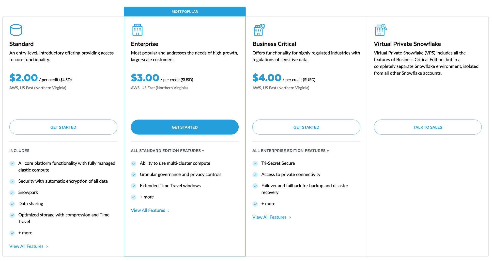 | Edition (Standard vs. Enterprise) | Enterprise adds ~50% to per-credit cost but unlocks multi-cluster warehouses and 90-day Time Travel | Most enterprise teams need Enterprise edition for concurrency |